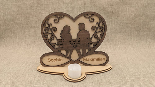 Ewige Verbundenheit: Personalisiertes Holz-Windlicht mit Herz & Namensgravur