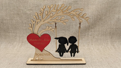 Herzensschaukel 1 – Personalisiertes 3D-Holzdisplay mit beweglichen Elementen & Gravur